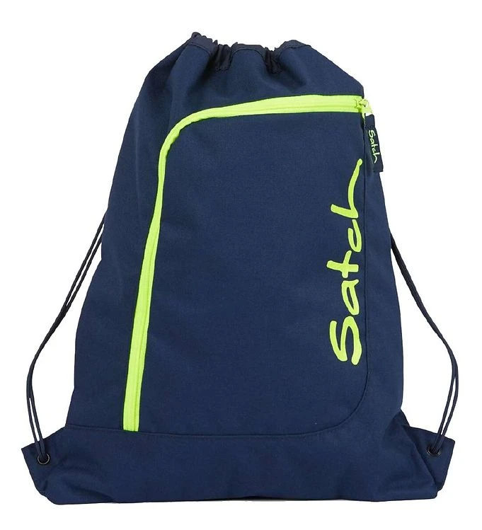 The Satch gymsack is closed at the top by tightening the laces. At the front is a small room which is closed with a zipper. The gymsack can be clicked on the outside of the school bagpacks from Satch with the strap with the click buckle in the top of the bag.